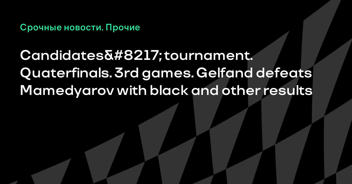 Candidates’ tournament. Quaterfinals. 3rd games. Gelfand defeats Mamedyarov with black and other results