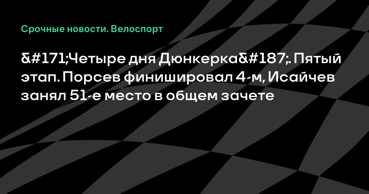 «Четыре дня Дюнкерка». Пятый этап. Порсев финишировал 4-м, Исайчев занял 51-е место в общем зачете