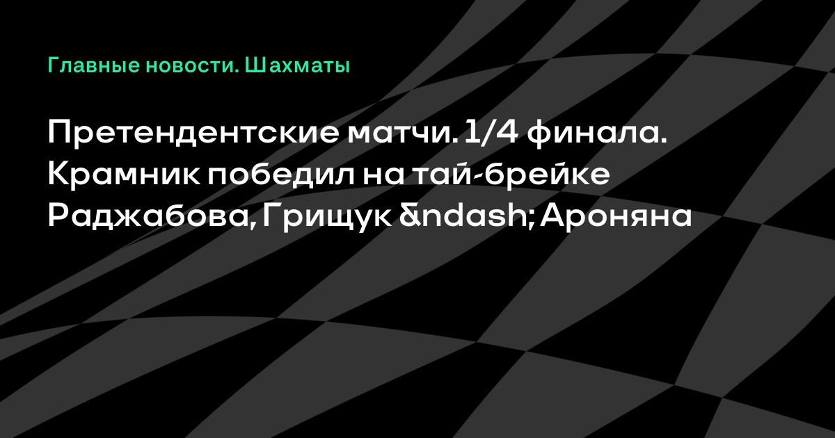 Претендентские матчи. 1/4 финала. Крамник победил на тай-брейке Раджабова, Грищук – Ароняна