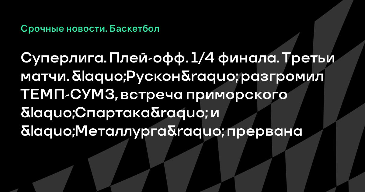 Суперлига. Плей-офф. 1/4 финала. Третьи матчи. «Рускон» разгромил ТЕМП-СУМЗ, встреча приморского «Спартака» и «Металлурга» прервана