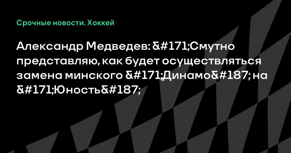 «От «Юности» КХЛ никаких заявочных документов в установленные сроки не получала. Что же до возможности замены минского «Динамо» по итогам переходных матчей… Знаете, я довольно смутно представляю, как это будет осуществляться юридически. По-моему, это трудновыполнимо», — цитирует Медведева «Прессбол».