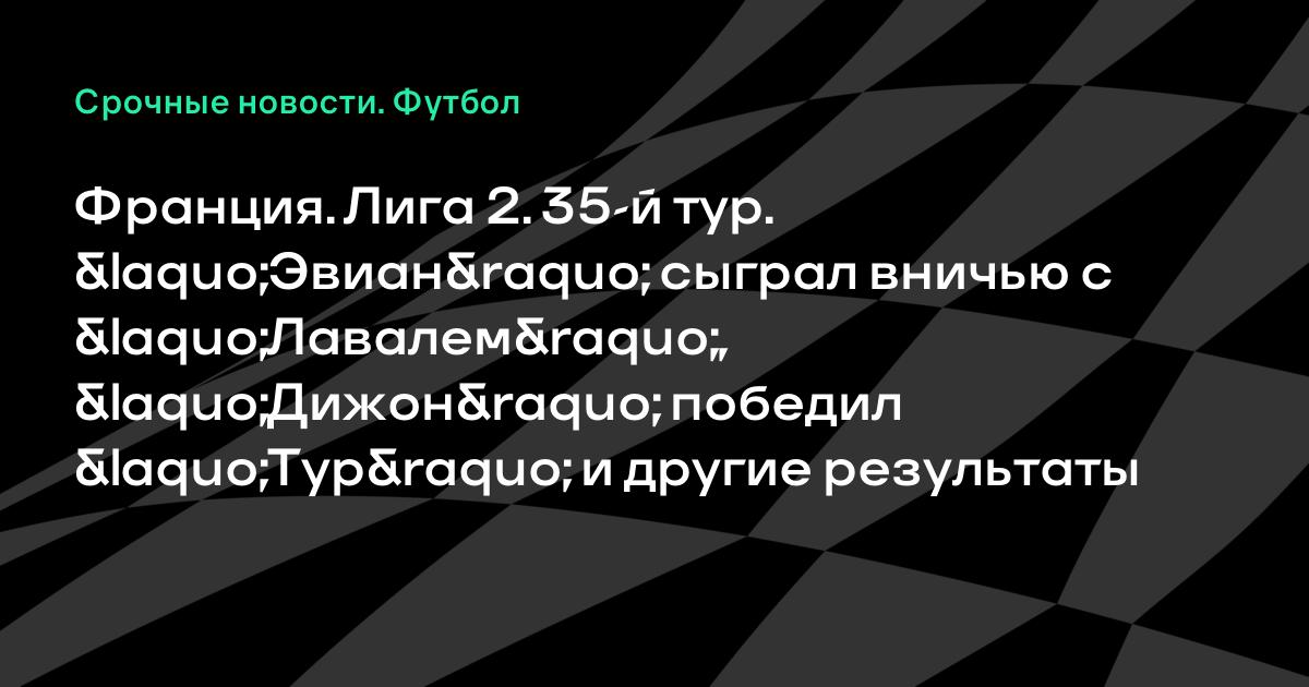 Франция. Лига 2. 35-й тур. «Эвиан» сыграл вничью с «Лавалем», «Дижон» победил «Тур» и другие результаты