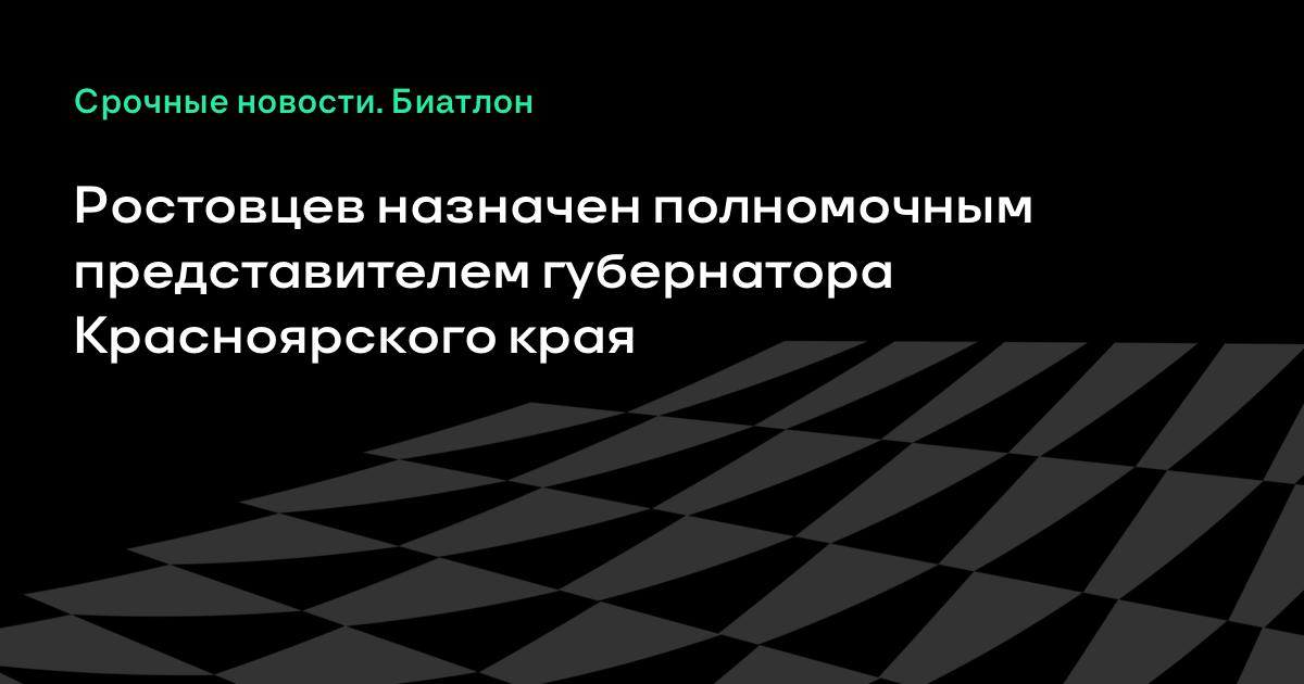 Известный биатлонист Павел Ростовцев назначен полномочным представителем губернатора Красноярского края в Центральном территориальном округе. Соответствующее распоряжение подписано губернатором Александром Хлопониным и вступило в силу.