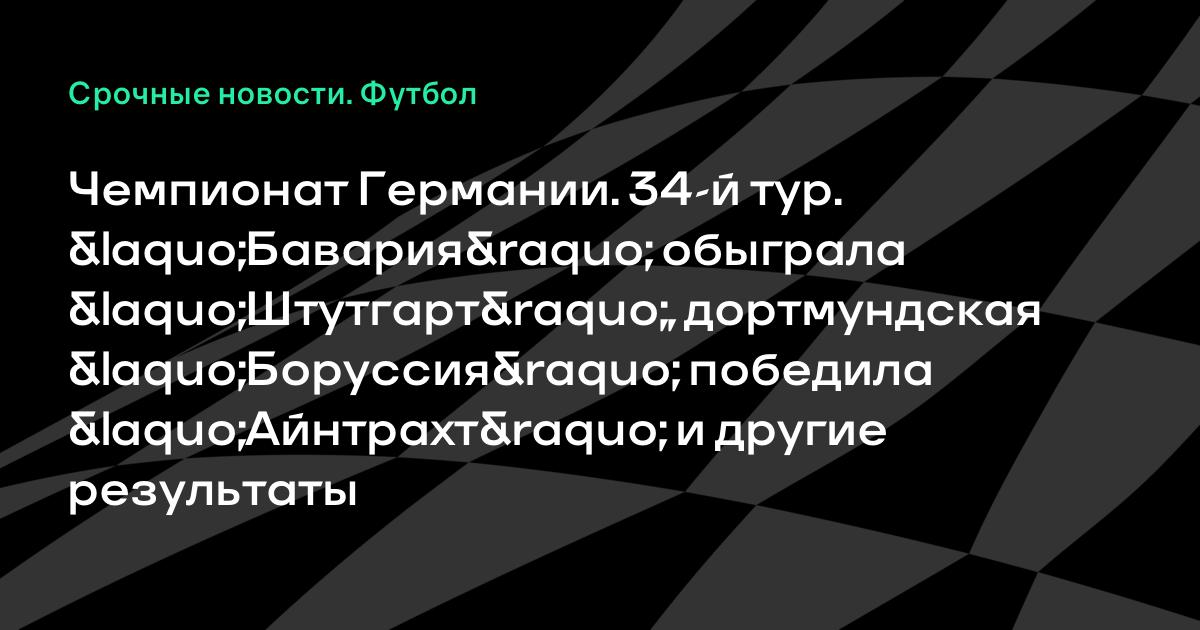 Чемпионат Германии. 34-й тур. «Бавария» обыграла «Штутгарт», дортмундская «Боруссия» победила «Айнтрахт» и другие результаты