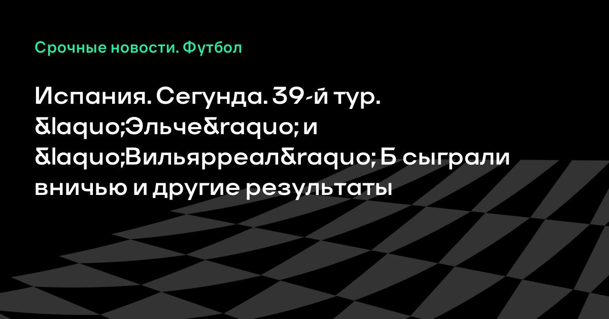 Испания. Сегунда. 39-й тур. «Эльче» и «Вильярреал» Б сыграли вничью и другие результаты