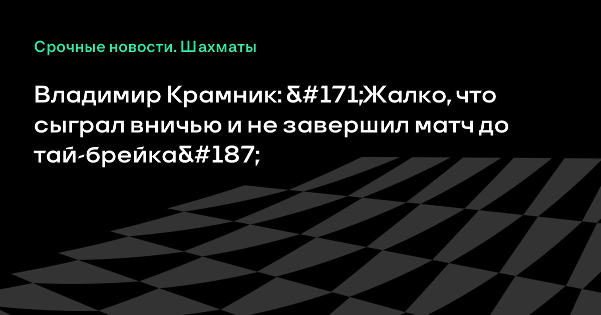 Владимир Крамник: «Жалко, что сыграл вничью и не завершил матч до тай-брейка»