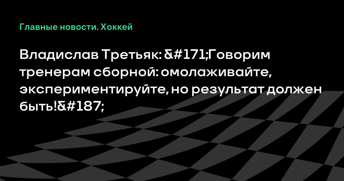 Владислав Третьяк: «Говорим тренерам сборной: омолаживайте, экспериментируйте, но результат должен быть!»