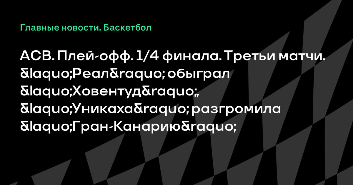 АСВ. Плей-офф. 1/4 финала. Третьи матчи. «Реал» обыграл «Ховентуд», «Уникаха» разгромила «Гран-Канарию»
