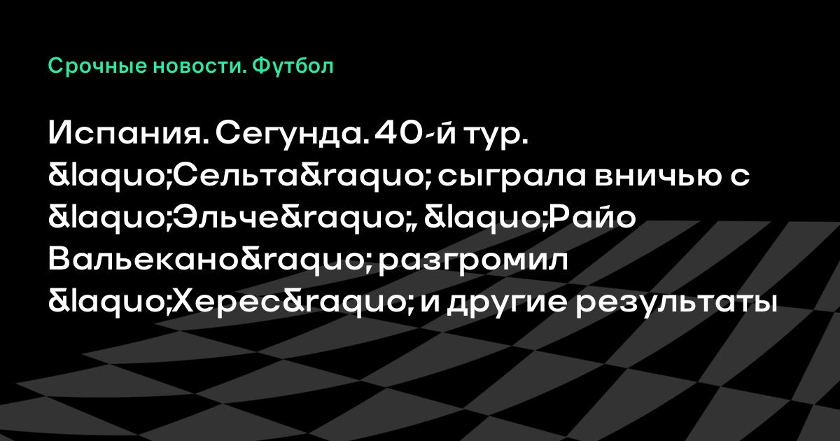 Испания. Сегунда. 40-й тур. «Сельта» сыграла вничью с «Эльче», «Райо Вальекано» разгромил «Херес» и другие результаты