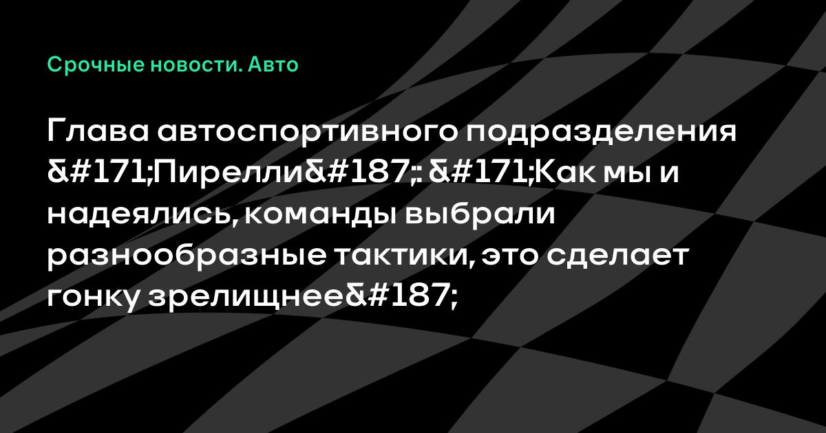 Глава автоспортивного подразделения «Пирелли»: «Как мы и надеялись, команды выбрали разнообразные тактики, это сделает гонку зрелищнее»