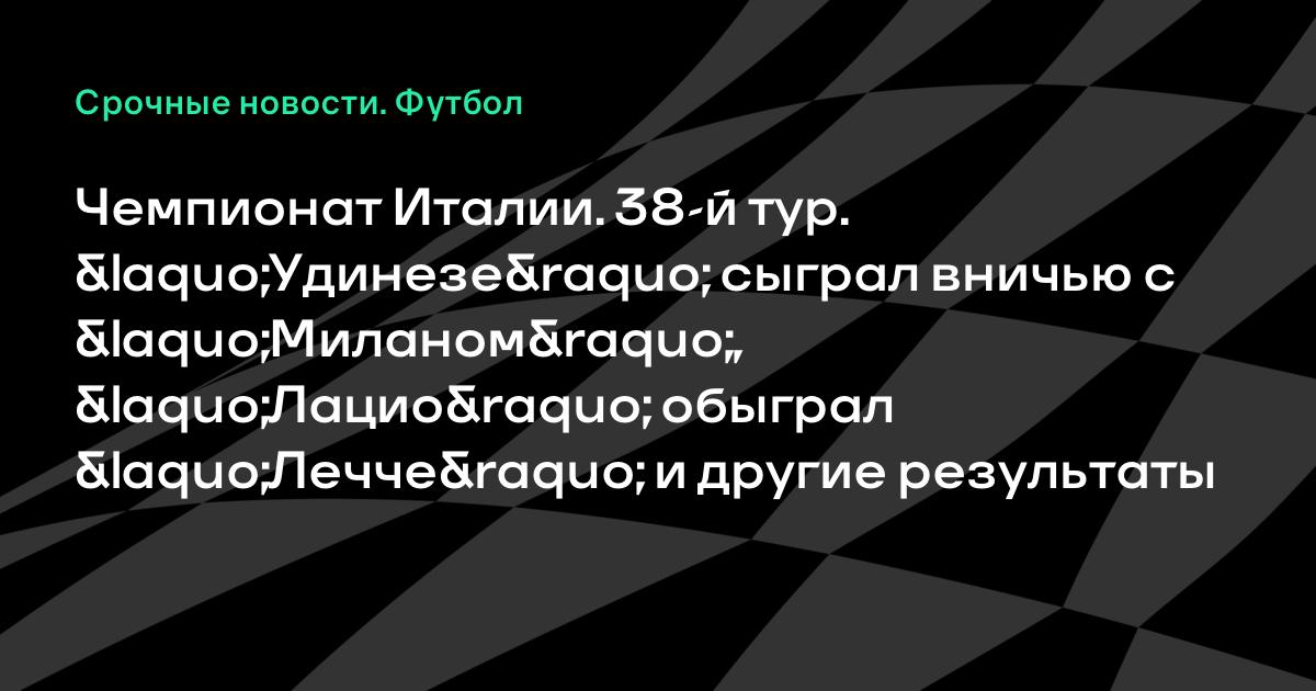 Чемпионат Италии. 38-й тур. «Удинезе» сыграл вничью с «Миланом», «Лацио» обыграл «Лечче» и другие результаты