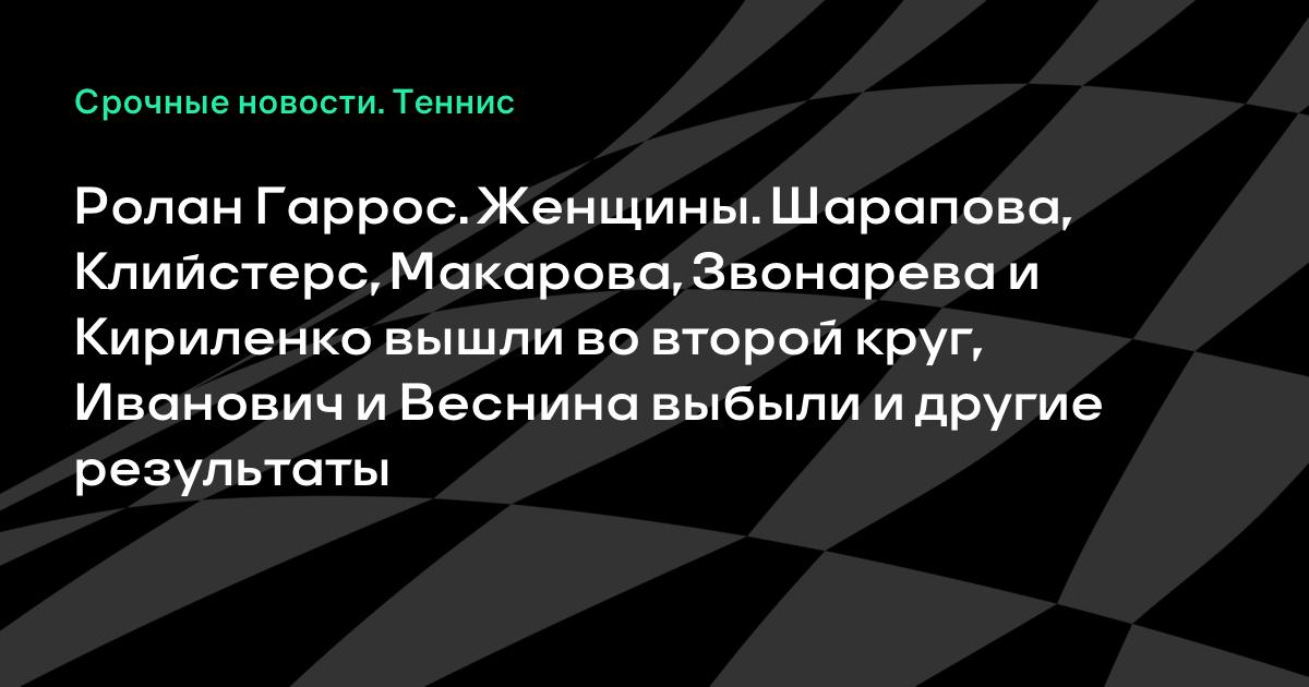 Ролан Гаррос. Женщины. Шарапова, Клийстерс, Макарова, Звонарева и Кириленко вышли во второй круг, Иванович и Веснина выбыли и другие результаты