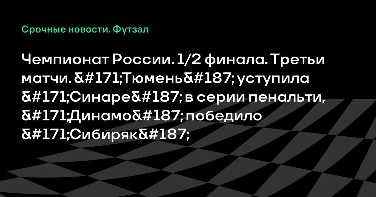Чемпионат России. 1/2 финала. Третьи матчи. «Тюмень» уступила «Синаре» в серии пенальти, «Динамо» победило «Сибиряк»