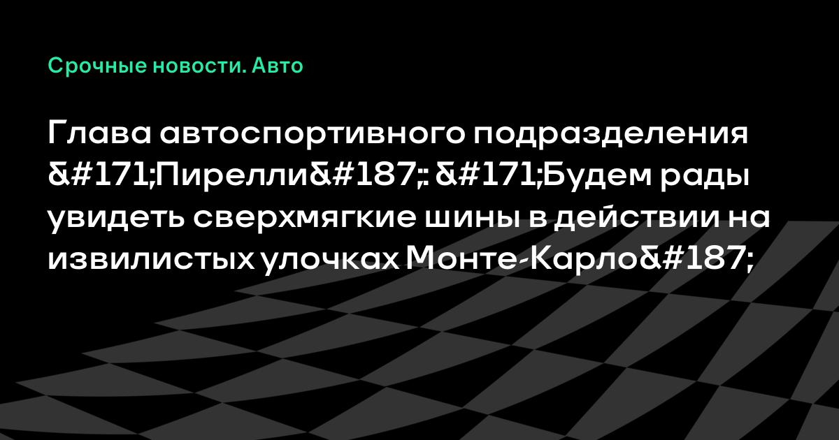 Глава автоспортивного подразделения «Пирелли»: «Будем рады увидеть сверхмягкие шины в действии на извилистых улочках Монте-Карло»