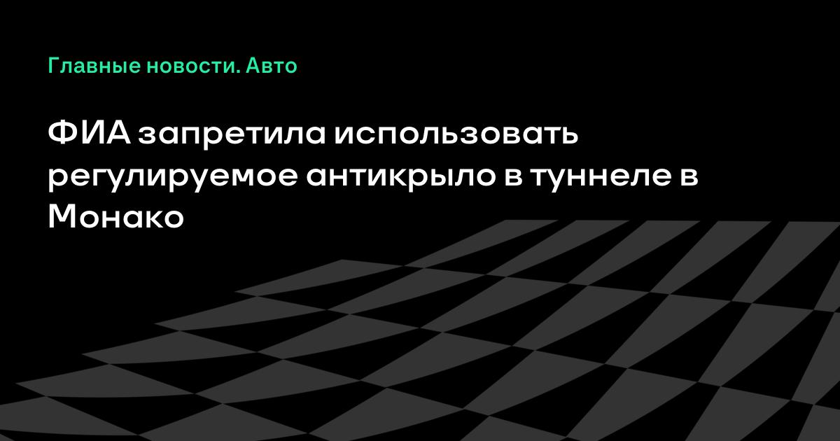 ФИА запретила использовать регулируемое антикрыло в туннеле в Монако