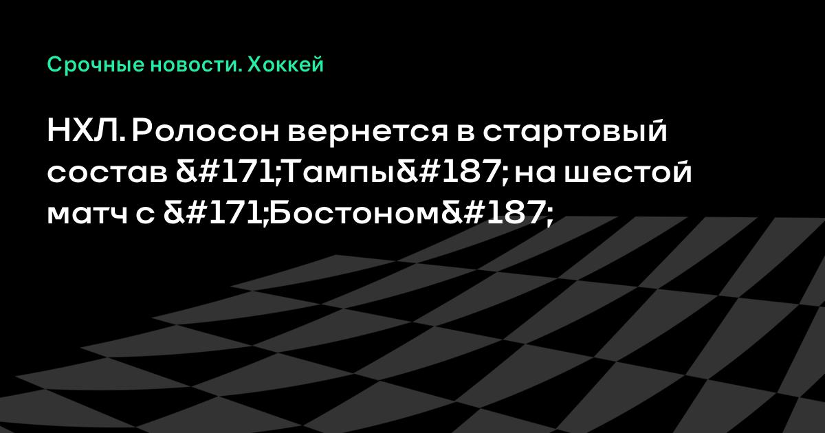 Голкипер «Тампа-Бэй» Дуэйн Ролосон выйдет в стартовом составе на шестой матч серии с «Бостоном», сообщает официальный сайт «Лайтнинг».