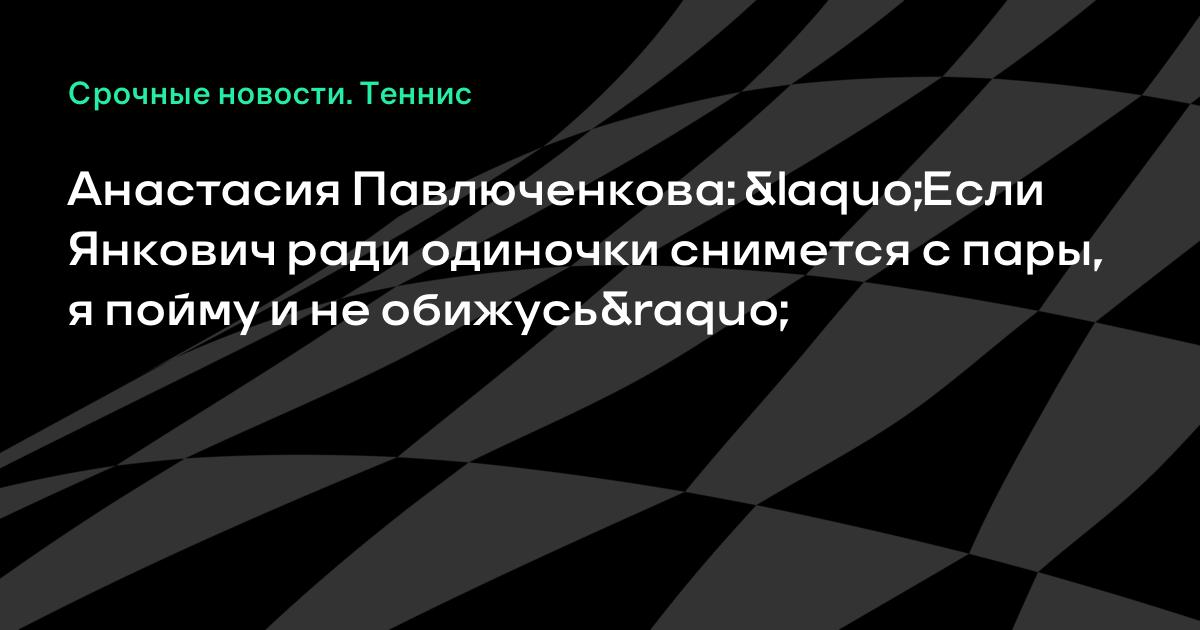 Анастасия Павлюченкова: «Если Янкович ради одиночки снимется с пары, я пойму и не обижусь»