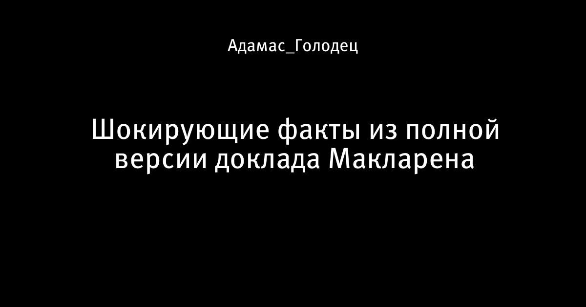 В наши руки попала полная версия доклада Макларена, которая содержит шокирующие факты беспрецедентного обмана, совершенного русскими на Олимпиаде в Сочи. Ниже представлены основные моменты из доклада, ранее не публиковавшиеся в российских СМИ: