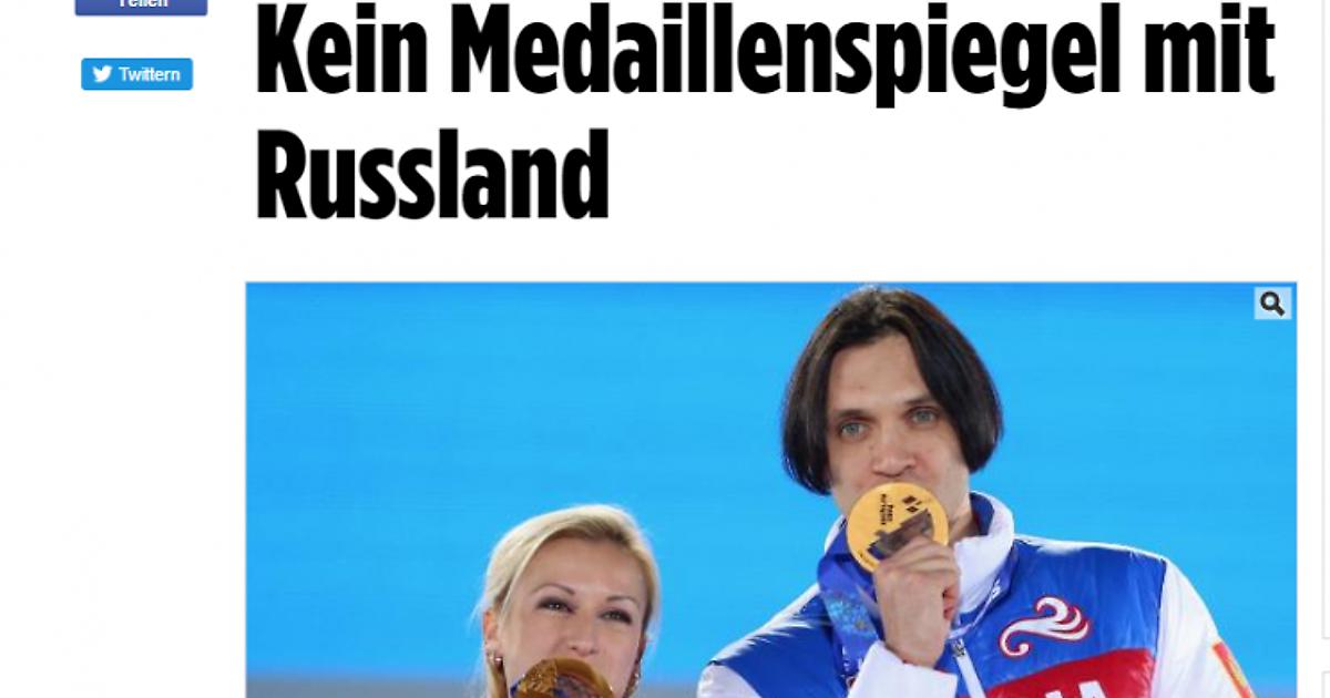 Сначала иллюстрация с фото Ксении Столбовой против графы "Конькобежцы" (именно так в ISU называются подопечные спортсмены) в графике приема допинга, потом попытки нашей федерации фигурного катания на коньках (к сожалению, только федерации, а не минспорта или ОКР) защитить честь спортсменки, а теперь вот красивое фото наших олимпийских чепионов под заметкой одного из самых популярных немецких изданий о бойкоте российской олимпийской сборной.