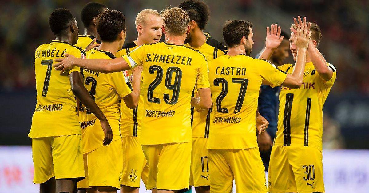 Томас тухель тоже удивил, выпустив на поле всего двух номинальных защитников. Место в воротах занял Роман Вайденфеллер. В защите играли Шмельцер, Свен Бендер, Сократис и Пасслак. В опорной зоне были Роде и Кастро, На левом фланге бегал Усман Дембеле, а на правом ходил Адриан Рамос. Кагава играл в центре. Форвардом был Обамеянг.