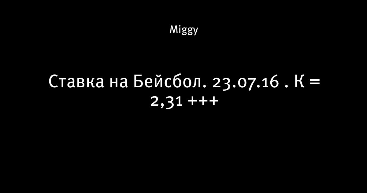 Ставка на Бейсбол. 23.07.16 . К = 2,31 +++