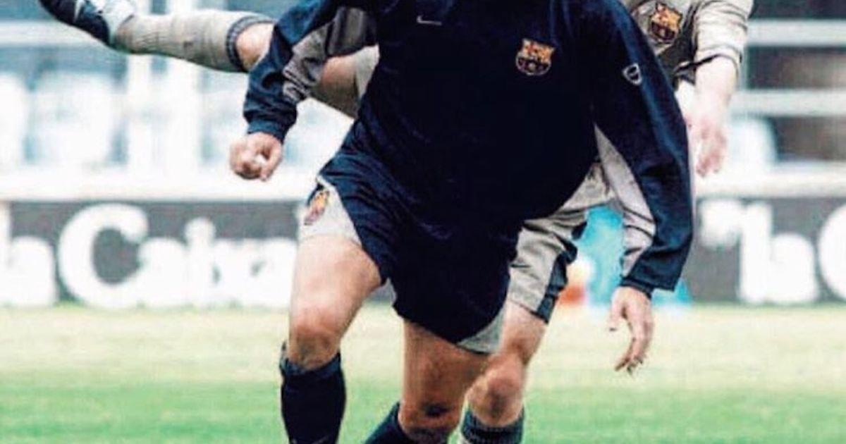 Хосеп Гвардиола и Луиш Фигу веселятся на тренировке «Барселоны».