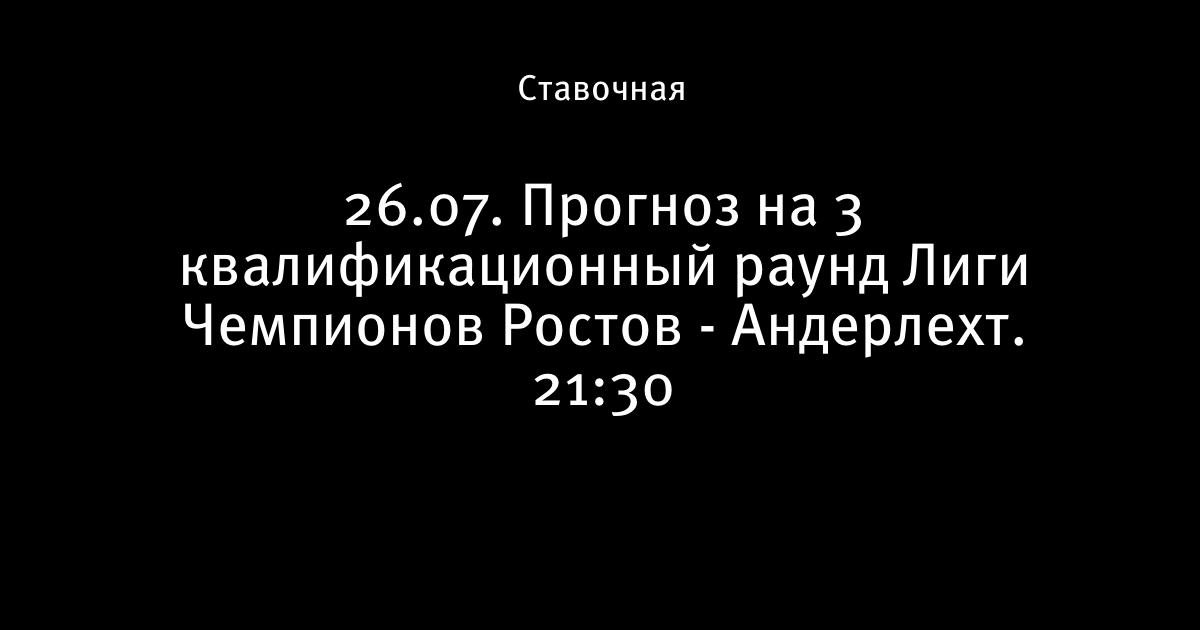 26.07. Прогноз на 3 квалификационный раунд Лиги Чемпионов Ростов - Андерлехт. 21:30
