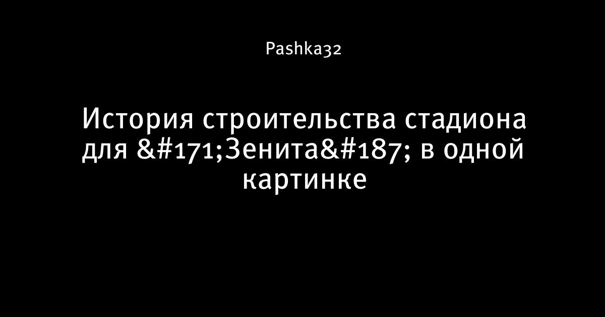27 июля 2016, 10:03 История строительства стадиона для «Зенита» в одной картинке Автор Pashka32 Этот пост опубликован в блоге на Трибуне Sports.ru. Присоединяйтесь к крупнейшему сообществу спортивных болельщиков! Другие посты блога Телевизор 3.0 ЧМ-2018 FIFA Кубок конфедераций стадионы премьер-лига Россия Зенит Газпром Арена (Крестовский)