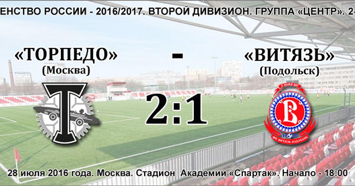 В матче второго тура первенства России – 2016/2017 среди команд второго дивизиона в группе «Центр» московское «Торпедо» праздновало волевую победу над подольским «Витязем». О том, как это было, наш материал.
