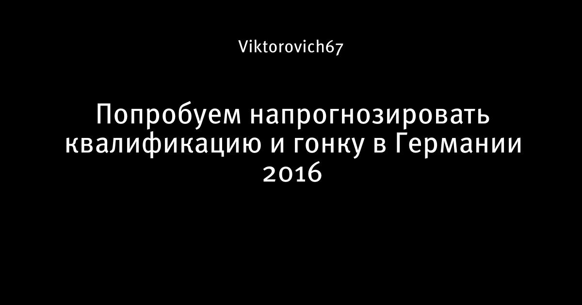 Попробуем напрогнозировать квалификацию и гонку в Германии 2016
