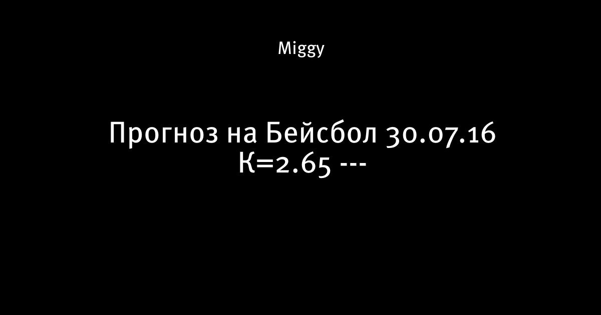 Прогноз на Бейсбол 30.07.16 К=2.65 ---