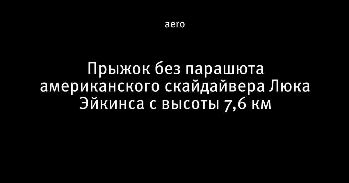 31 июля 2016, 10:01 Прыжок без парашюта американского скайдайвера Люка Эйкинса с высоты 7,6 км 1 Автор aero Этот пост опубликован в блоге на Трибуне Sports.ru. Присоединяйтесь к крупнейшему сообществу спортивных болельщиков! Другие посты блога Вы это видели?