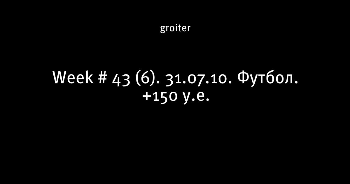 Week # 43 (6). 31.07.10. Футбол. +150 у.е.