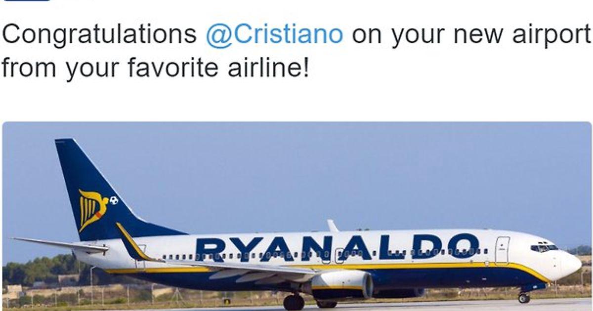 Ирландская авиакомпания Ryanair поздравила нападающего "Реала" и сборной Португалии Криштиану Роналду с тем, что аэропорт Мадейры переименуют в его честь.