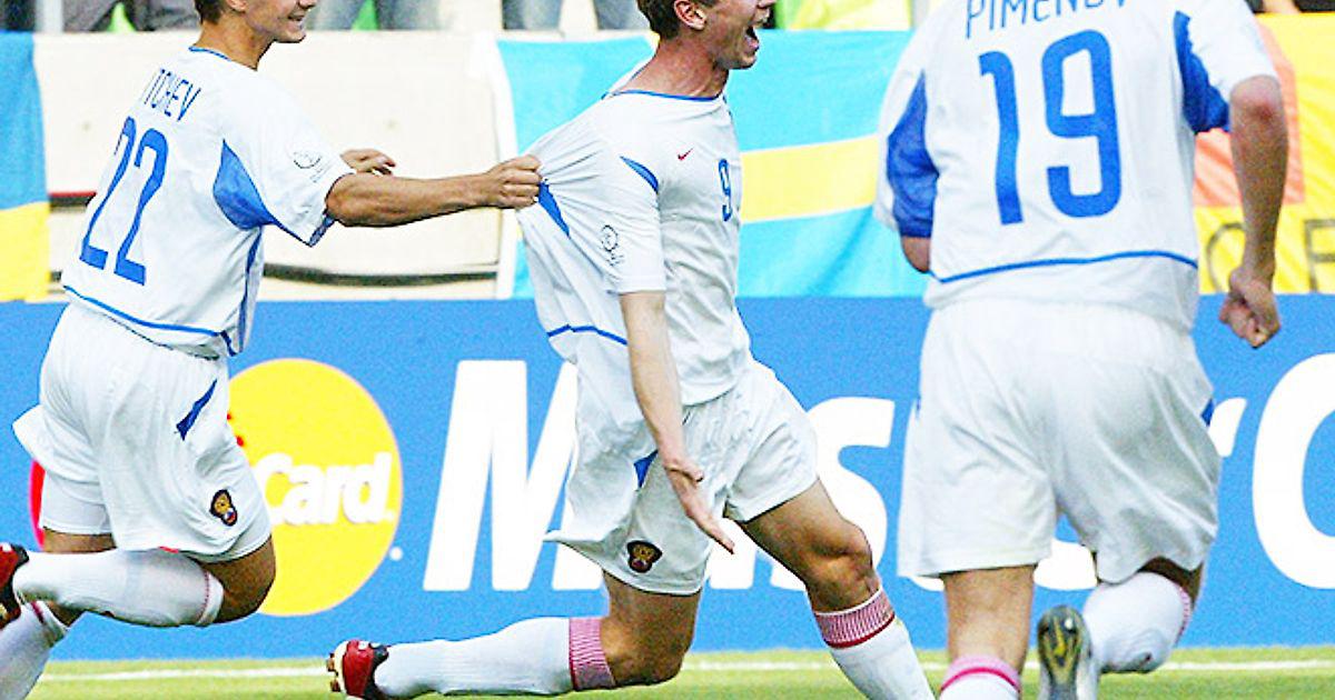 Егор Титов празднует гол в ворота Туниса на ЧМ 2002
