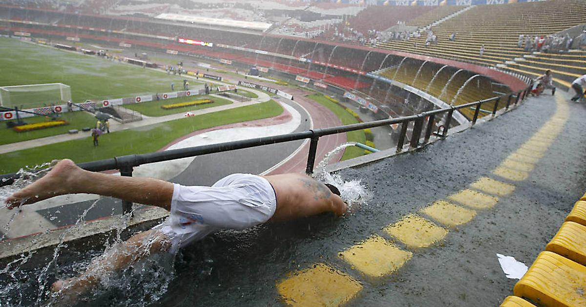 Фанат «Сан-Паулу» плывет к своему сектору на матче с «Палмейрасом». 2011