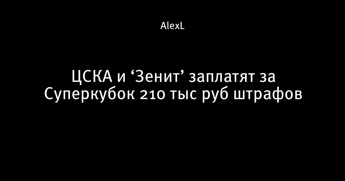 ЦСКА и ‘Зенит’ заплатят за Суперкубок 210 тыс руб штрафов
