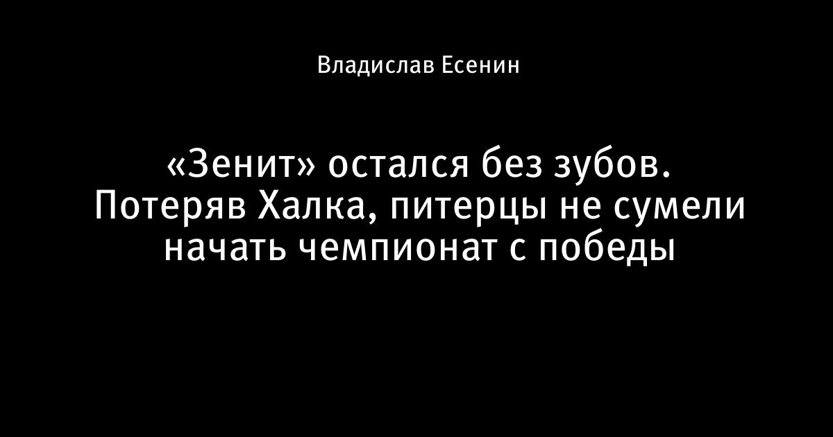 «Зенит» остался без зубов. Потеряв Халка, питерцы не сумели начать чемпионат с победы