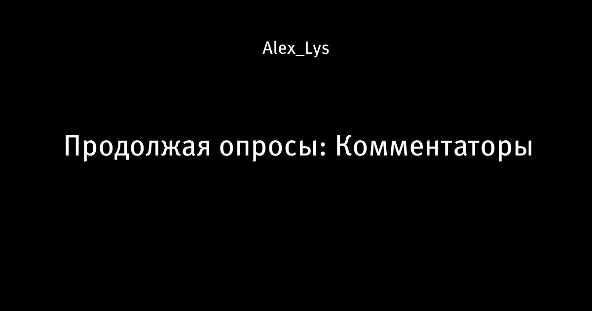 Как вы относитесь к комментаторам? Есть ли у вас любимые комментаторы? Как вы к ним относитесь: как к "звездам" (они приносят в матч некую дополнительную ценность) или как к "молодцам среди овец" (остальные так раздражают, что вы надеетесь, что матч будут комментировать именно эти комментаторы)? Заметите ли вы, если они покинут эфир или сменят канал?