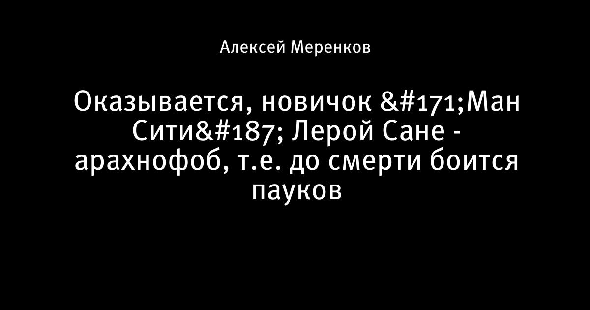 3 августа 2016, 07:07 Оказывается, новичок «Ман Сити» Лерой Сане - арахнофоб, т.е. до смерти боится пауков Партнеры по его бывшей команде любили посмеяться над его страхом Автор Алексей Меренков Этот пост опубликован в блоге на Трибуне Sports.ru. Присоединяйтесь к крупнейшему сообществу спортивных болельщиков! Другие посты блога Вы это видели? премьер-лига Англия Манчестер Сити Шальке бундеслига Германия Лерой Сане
