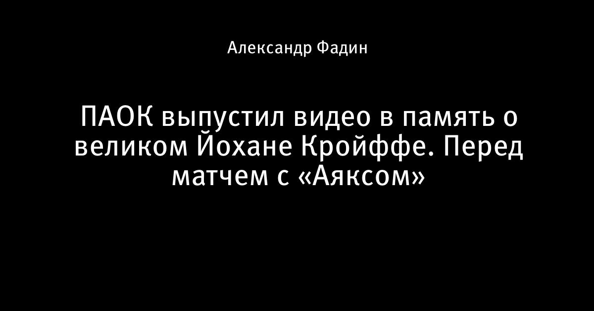 3 августа 2016, 21:45 ПАОК выпустил видео в память о великом Йохане Кройффе. Перед матчем с «Аяксом» 1 Автор Александр Фадин ПАОК Лига чемпионов УЕФА Аякс Йохан Кройфф