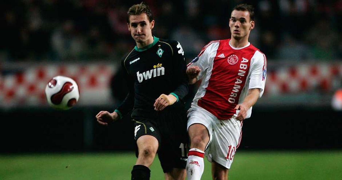 Кубок УЕФА 2006/07. Форвард Вердера Мирослав Клозе и полузащитник Аякса Весли Снейдер