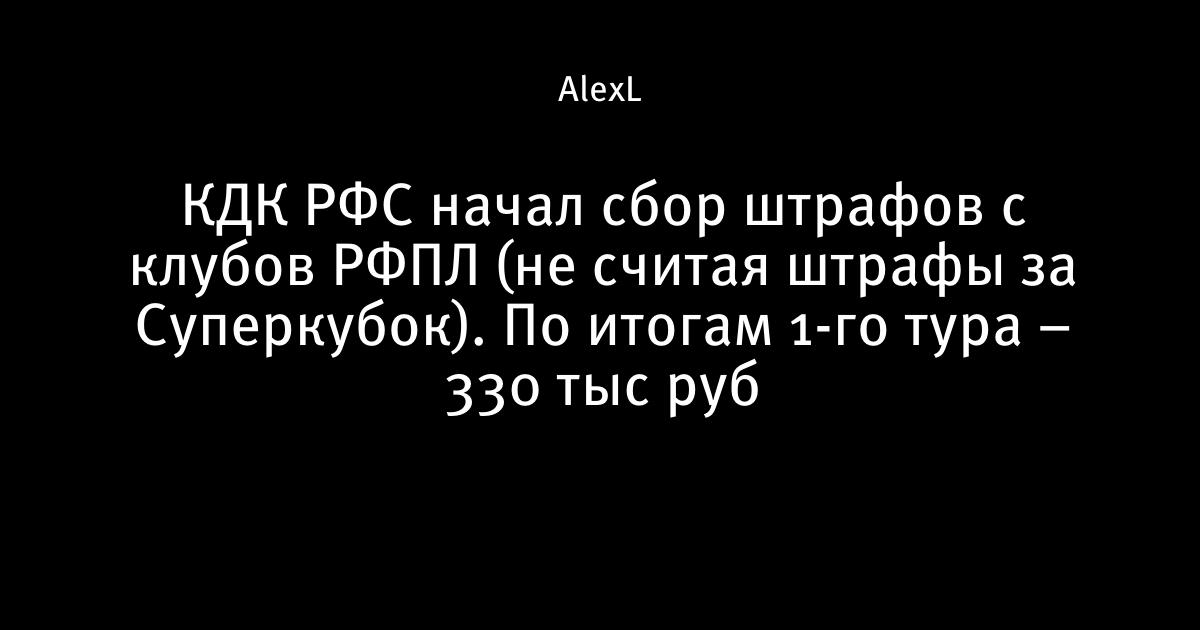 КДК РФС начал сбор штрафов с клубов РФПЛ (не считая штрафы за Суперкубок). По итогам 1-го тура – 330 тыс руб