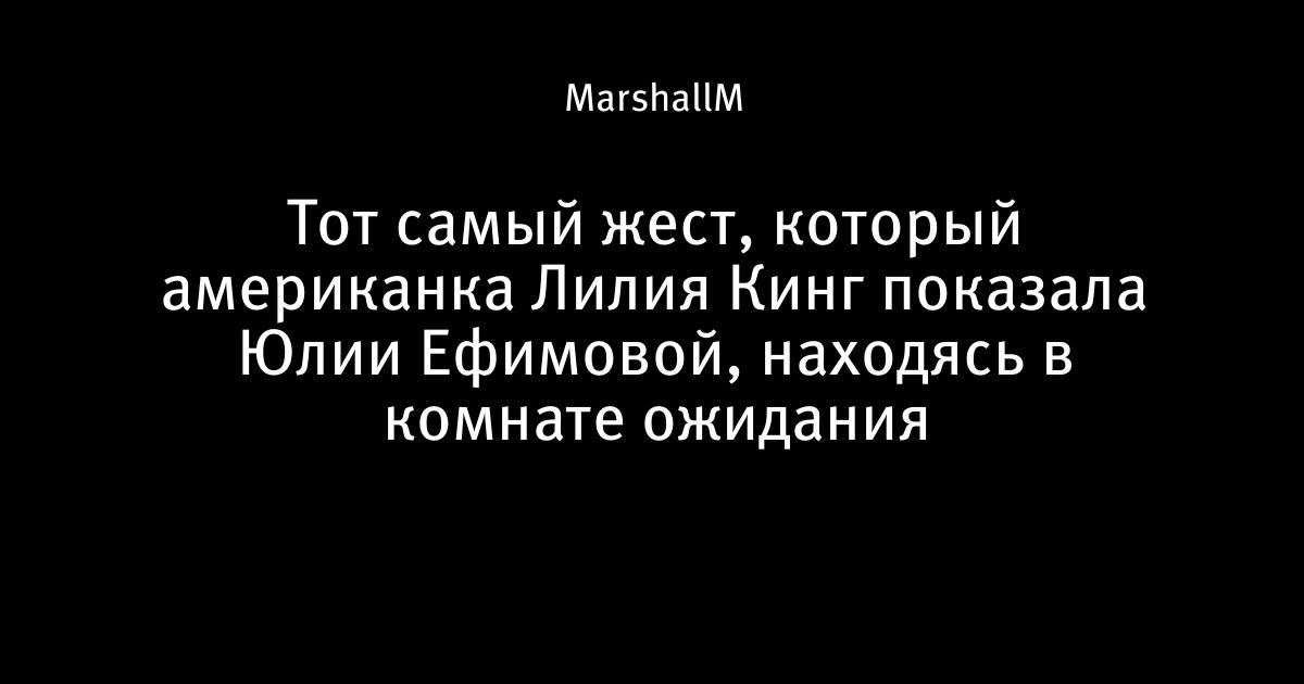 8 августа 2016, 19:59 Тот самый жест, который американка Лилия Кинг показала Юлии Ефимовой, находясь в комнате ожидания 1 История Автор MarshallM Этот пост опубликован в блоге на Трибуне Sports.ru. Присоединяйтесь к крупнейшему сообществу спортивных болельщиков! Другие посты блога Вы это видели? Рио-2016 Юлия Ефимова Лилли Кинг плавание