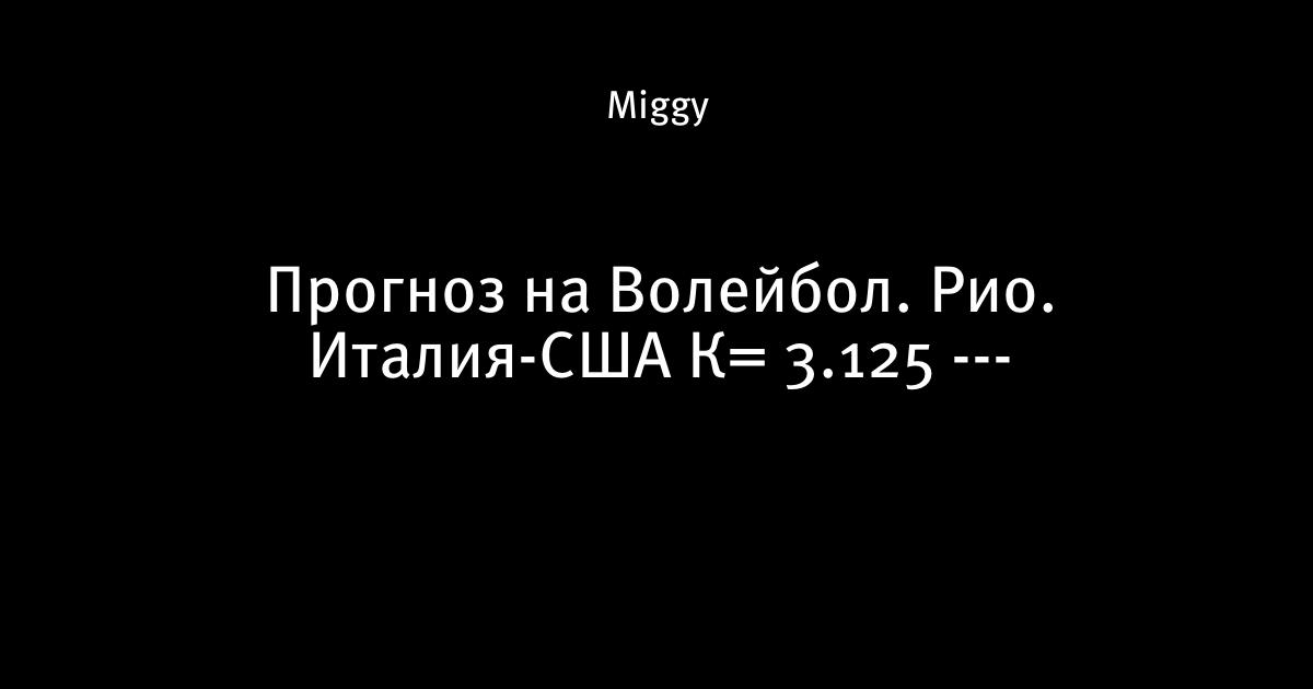 Прогноз на Волейбол. Рио. Италия-США К= 3.125 ---