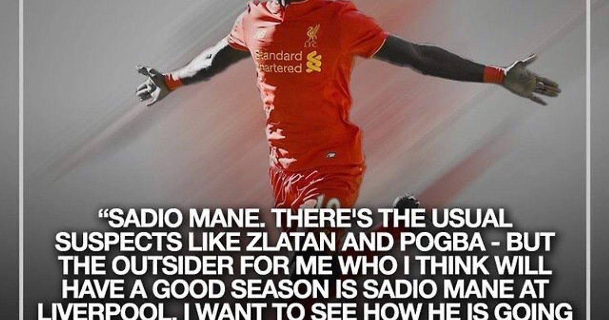 "Садио Мане. Есть фавориты, игроки от которых всегда ожидаешь чего-то, вроде Погба или Златана. Но для меня аутсайдер, который проведёт хороший сезон - это Садио Мане в Ливерпуле. Я хочу посмотреть, как он будет справляться, и, учитывая стиль Ливерпуля, я думаю, он проведёт очень хороший сезон и будет любимцем публики."