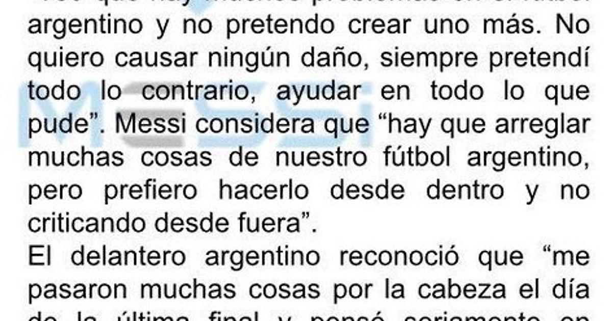 «Я вижу, что в аргентинском футболе много проблем и не намерен создавать еще одну. Хочу помогать так, как только могу. В аргентинском футболе многое нужно исправить. Но я предпочту делать это изнутри, а не критиковать извне.