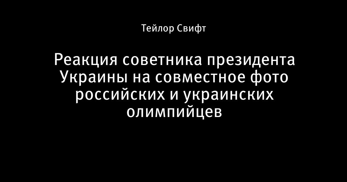 13 августа 2016, 10:59 Реакция советника президента Украины на совместное фото российских и украинских олимпийцев Автор Тейлор Свифт Этот пост опубликован в блоге на Трибуне Sports.ru. Присоединяйтесь к крупнейшему сообществу спортивных болельщиков! Другие посты блога Телевизор 3.0 Рио-2016