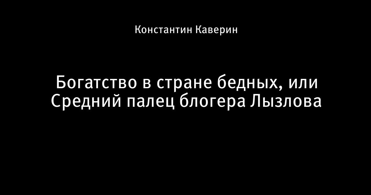 Богатство в стране бедных, или Средний палец блогера Лызлова