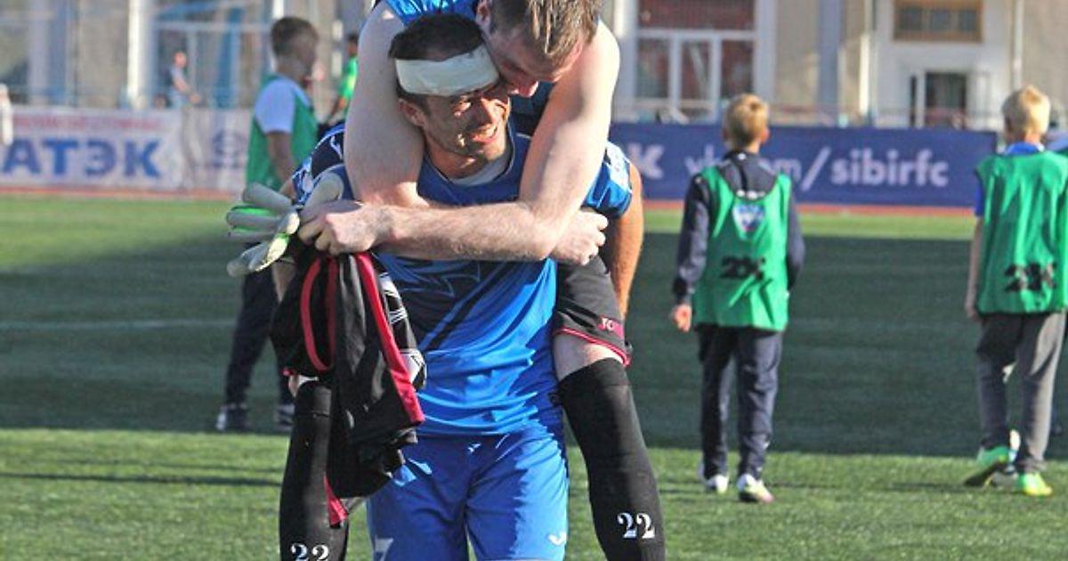 Во втором тайме, уже останавливали кровь и бинтовали голову Евгению Чеботару, несколько минутами ранее он реализовал единственный момент сибиряков в матче.